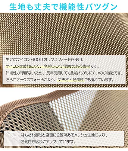 また背面はメッシュ加工がしてあり通気性抜群、湿気がこもらない仕様です。座面の生地も丈夫で摩耗しにくく、強度があるので安心して座ることができます。