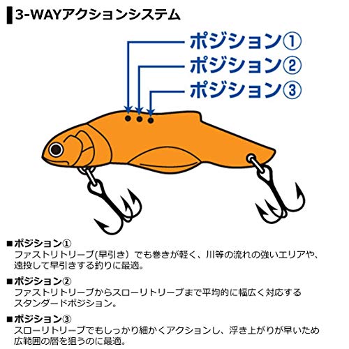 小粒な一口サイズ、都市河川の岸壁、ストラクチャー狙いやハイプレッシャーエリアに強い、コンパクトサイズのバイブレーションです。サイズ展開は2019年新作となる「70S」と、コンパクトなサイズが特徴の「57S」の2タイプ。ただ巻きだけでもバッチリ遊べるルアーですが、ラインスラックを出しながらシャクる「3Dダート」に対応する器用さを兼ね備えています。地下鉄に乗ってデイシーバスに出かける方は、是非試してみてください!