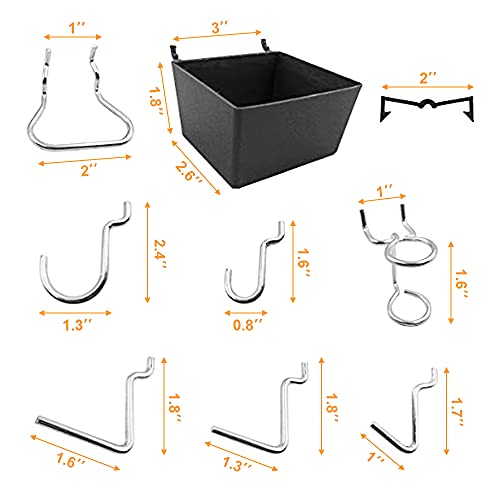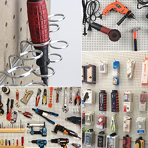 まず、ピッチが2.54cm、穴直径5mmサイズの有孔ボードに適応しています。大きさが7.5×11.6×26cmで、スチール、クロールメッキ仕上げされています。ボードの穴に通して掛けるだけで物が収納できます。