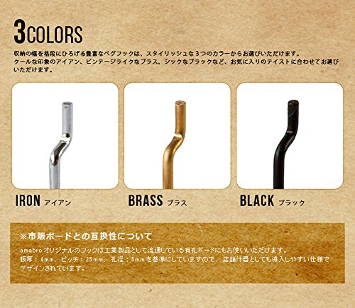 ピッチが25mm、穴の直径が5mmの有孔ボードにつかえます。U字フックにはペグピンというものが付いており、フックを掛けて固定することができます。