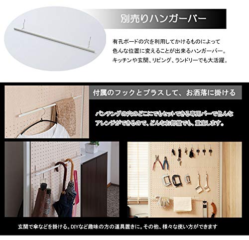 なお、耐荷重については記載がなかったため、重いものを掛ける場合は注意してください。また、ボードの穴に掛けるだけで、5つのものを収納できます。