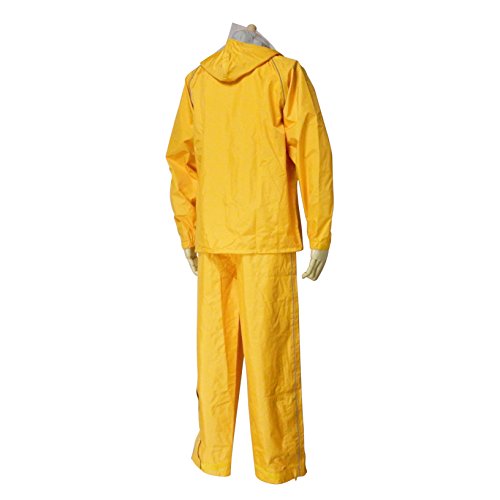 主要素材はゴアテックスの3層素材を使用しています。動きやすく透湿防水素材ですので、農作業や現場作業には最適素材です。フードは取り外し式となり、コンパクト収納用の袋に仕舞う事になります。収納袋は上下一緒に折りたたんで収納することができます。サイズはS~BLLまで9サイズあり、かなり細かく分類されていますので、サイズ表を良く見て購入する事が必要です。普通に使用するには最高のレインスーツですが、カラーはイエローのみとなります。
