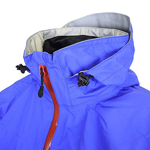 主素材は高い防水・耐水圧性能があるゴアテックス・ファブリックスを採用しています。寒い時には、その保温性で防寒着としての使用も可能です。フードに着いた水滴を横方向に流す加工も施され、顔への流れ込みを減少させてくれます。上下セットでコンパクトにたためるのですが、作業用に使用するため収納袋は付属しません。カラーはロイヤルブルー・マゼンタ・イエローの3色で、サイズはS~3Lまでの5サイズあります。