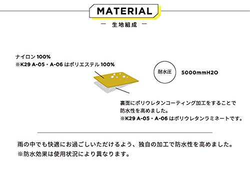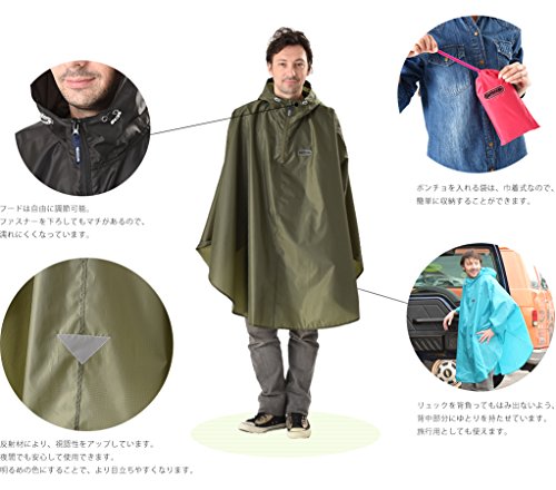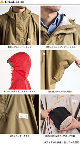 プリントデザインに注目しがちですが、性能も確かなポンチョです。ナイロン系素材に撥水加工やラミネート加工施し、高い防水性能を獲得していますので、アウトドア使用から街中使用まで可能にしてあります。素材が軽量なのでコンパクトにたため、ポンチョを入れるポーチも付属品です。男性用・女性用兼用で、サイズもフリーサイズになっています。着やすく使いやすい機能を採用し多彩にカラーも選べ、価格的にも安い楽しいポンチョです。