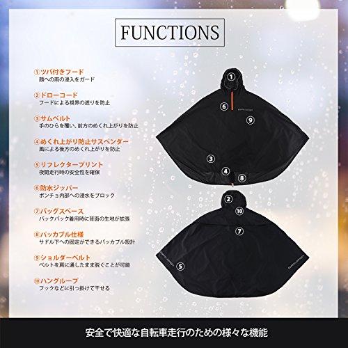 大阪の自転車・自転車アクセサリーブランドのドッペルギャンガーより、自転車用の雨具として発売されているポンチョです。使用しない時は自転車のボトルホルダーなどおしゃれに収納できます。スポーツ用自転車でなくとも通勤・通学用の自転車でも使用できる仕様のポンチョです。