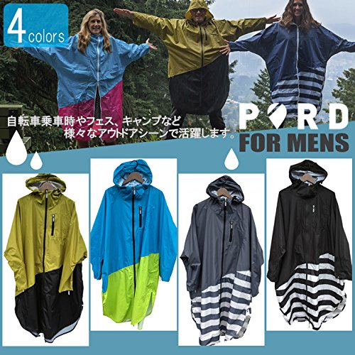 神奈川県発の雨具ブランド・PORD(ポード)の販売するおしゃれなレインポンチョです。ポードのポンチョは男性用・女性用・子供用と区切りがあり、ここでは男性用を紹介します。楽しい目立つデザインが人気で5種類のデザインが用意されており、普段の遊びから自転車走行まで使えるポンチョです。