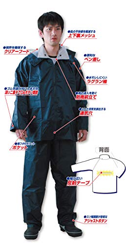 このレインスーツは耐水圧10000mmと高い防水性能の他、透湿性にも優れています。裏地がメッシュ素材となっているため、長時間の着用でも蒸れずに快適。軽量で動きやすさも重視されているため、通勤・通学・アウトドアやワーク用とさまざまなシーンで活躍してくれるでしょう。