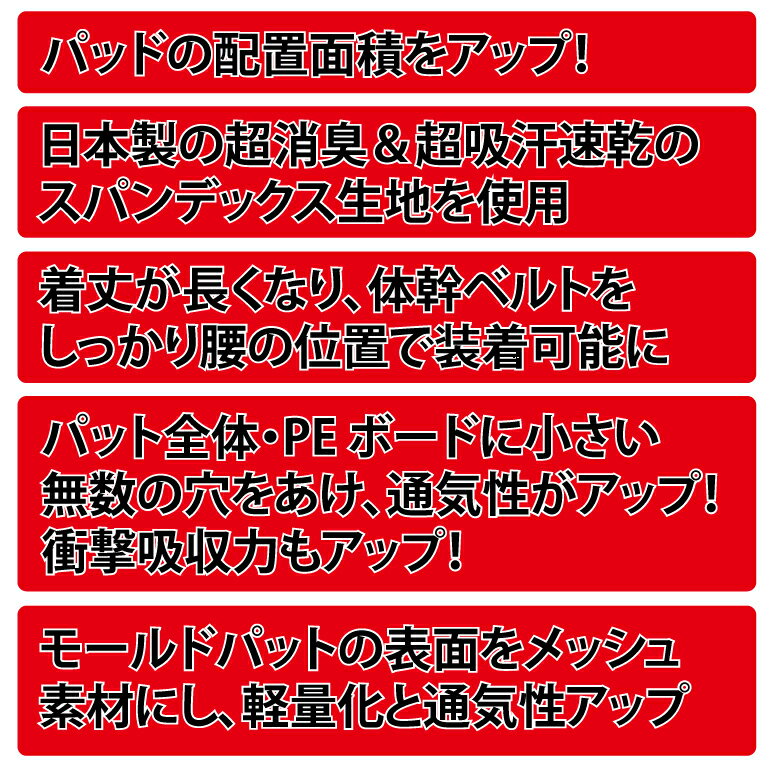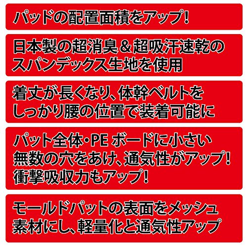 いわゆるプロテクターと呼ばれる大型のパッドのことです。上半身と下半身のプロテクターを合わせて全身をしっかり守ってくれるのでクッション性抜群ですが、上半身から下半身までのセットとなることから重たく、効果です。またメーカーによっては構造に工夫があり上半身と下半身をシームレスに繋げられる便利なものもあります。上半身と下半身のプロテクターが一体になることでぶつけてもずれにくくしっかり防いでくれます。