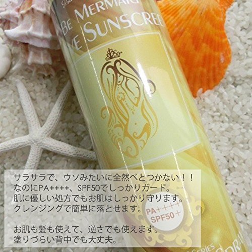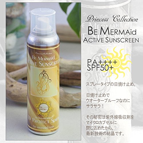 プリンセスコレクションのスプレータイプの日焼け止めです。簡単に塗る事ができ、時間の無い時に軽い感覚サッと濡れるので便利です。からだや顔に使用の他、髪への使用できます。紫外線吸収剤はマイクロカプセルに入れてありサラサラの感じとなり、ウォータープルーフ機能もありUVカットも強力です。スプレーを逆さまに使用しても使えよく効く日焼け止めですが、石鹼で落とせるタイプタイプではありませんので、クレンジングを使用してください。