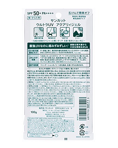 サンカット日焼け止めジェルは、肌の事を良く知るコーセー化粧品の製品です。そしてコスパ的には最強クラスとなります。当然、よく効く日焼け止めであり、ボトルから必要量を塗る箇所に出し塗るタイプです。落とすのも簡単で、石鹼で落とせるタイプになっています。気軽に購入して使える日焼け止めです。