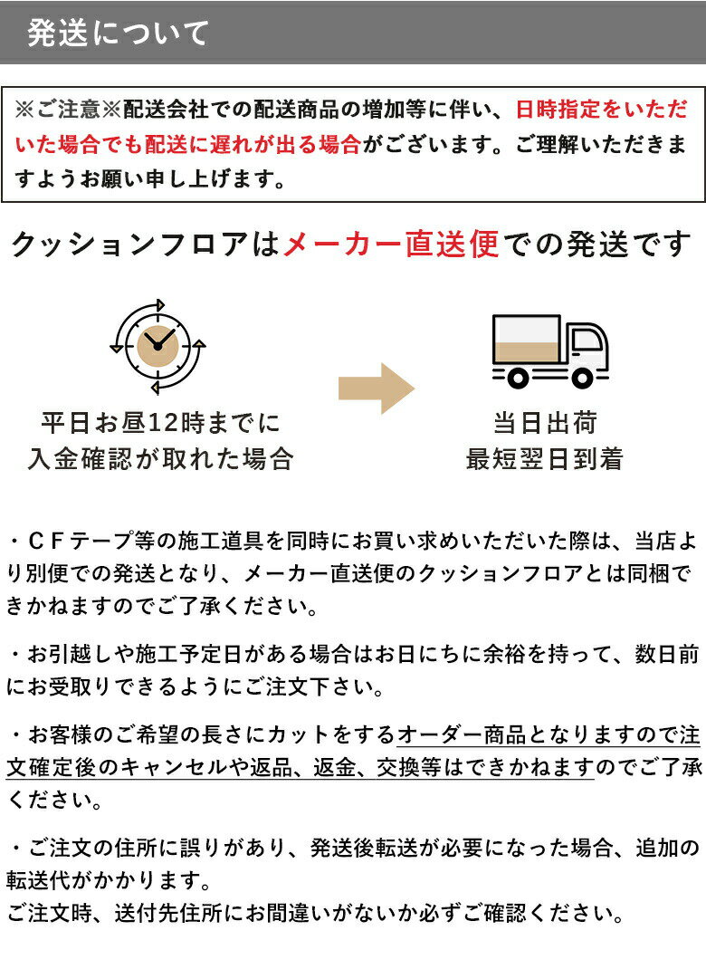 サイズは厚み2.6mmと一般的なフロアタイル並の厚みがある土足用の製品。縦は100cmで、横は200cmとなっています。ぜひこの機会に購入してみてください。