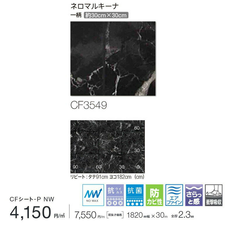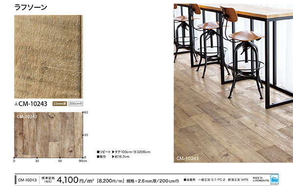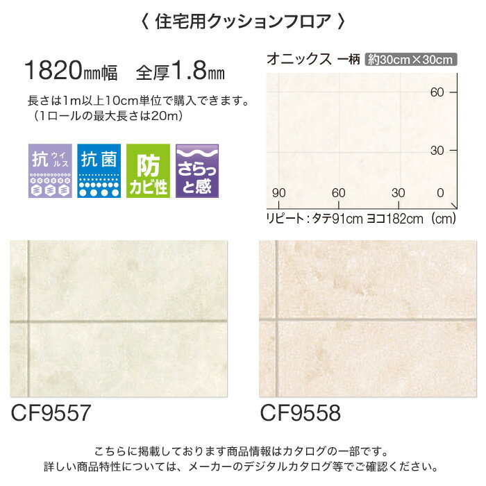 サイズは厚み1.8mmと一般的なフロアタイル並の厚みがある土足用の製品。縦は182cmで、1m単位での販売となっています。ぜひこの機会に購入してみてください。