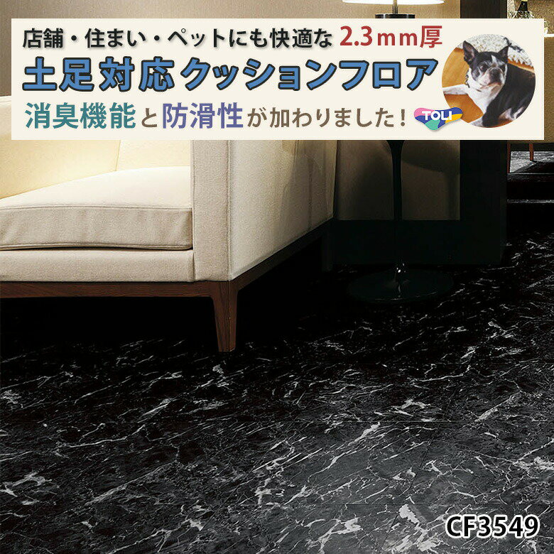 まったく違った印象の部屋に模様替えしたいなら、思い切って大理石柄にしてみてはいかがでしょうか。中でも黒い大理石風は珍しくておすすめ。本物の大理石なら足元が冷たいですがクッションフロアなので冬に裸足で歩いてもそれほど冷たくありません。クッション性も良くペットのお部屋に敷く人も少なくありません。