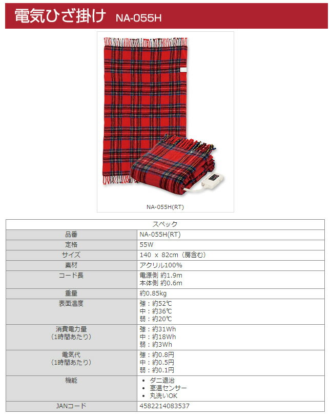 また、十分な大きさを確保しているモデルです。チェック柄を採用している電気毛布なので、機能性だけでなく、デザイン性も求めたいと考えている方にも適しています。