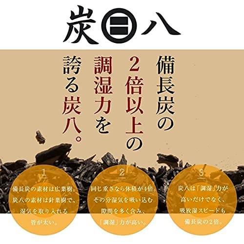 カビを防いでニオイを吸い取るのに、炭のちからが効果的というのはその製品種類の多さからもわかりますが、この炭八の炭は他とは少し違います。見た目にはわかりにくいですが、十分に炭化させているため内部の穴の大きさが倍くらいあり、そのためニオイを吸う力が桁違いにすごいのが特徴です。