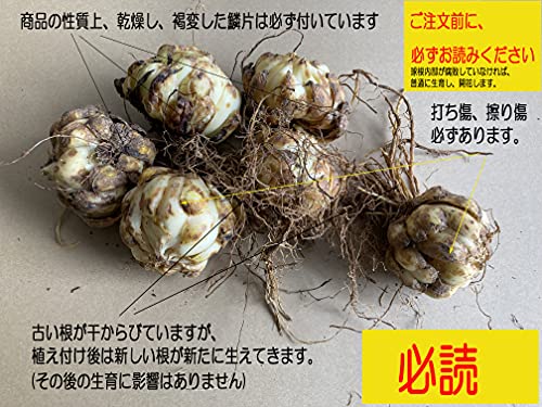 理由は掘り起こしてから時間がたつと乾燥して軽くなる・鱗片の隙間があくなどの現象がおこってくるからです。大きさはもちろんこれから咲く花の数に大きく影響してきます。