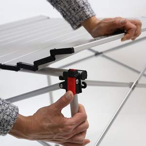 組み立てがとても簡単でフレーム部分を開いて、上にロールテーブルを乗せてはめ込むだけになっています。構造がしっかりとしていて、がたつきがなく安定感があります。専用の収納袋があるので車載も場所を取らず楽にできます。