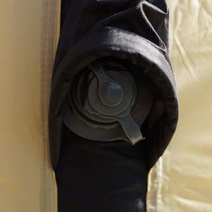 テントのシートは紫外線をカットするUVカット素材になっています。テントの出入口は内側がメッシュの二重構造で、暑い夏場はメッシュにしておくと通気性が良く虫が入りません。大型のベンチレーターも配置しているので、湿気や熱がこもらず寝る時も快適です。
