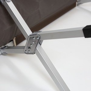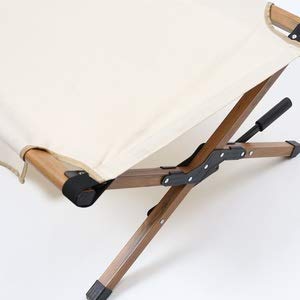 レバー式GIコット(アルミ)は、組み立てが簡単なレバー式になった今までにないコットで、おしゃれなデザインが人気です。木製よりも軽いアルミ製のフレームで、木目調のラミネート加工をされています。コットンテントにも良く合うナチュラルなデザインです。