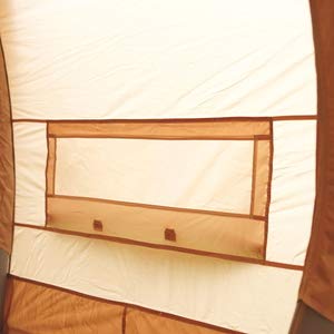 アルネスはキャンプ女子にも人気のナチュラル系のデザインで、きれいな風合いのポリコットン素材を使用しています。ポール2本を使って設営し、フライを張り出して簡易の前後室も作れます。テントの内部にインナーテントをの取り付けができ、上部のフックにかけて簡単に取り付けることができます。