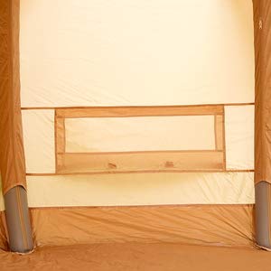 エアフレーム構造で一人でも楽に設営できるようになっています。センターポールがないので天井まで広く、ベットやコットを入れてゆったりと過ごせます。ベンチレーション構造で、室内の換気もできるようになっています。