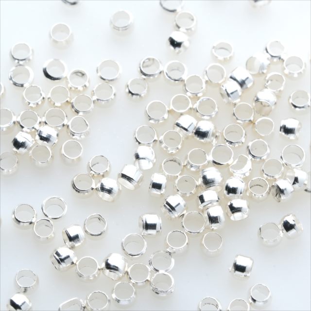 やわらかめな金属でできていてラジオペンチなどで挟むと簡単につぶせてのそ位置に固定されビーズが抜け落ちるのを防いでくれます。