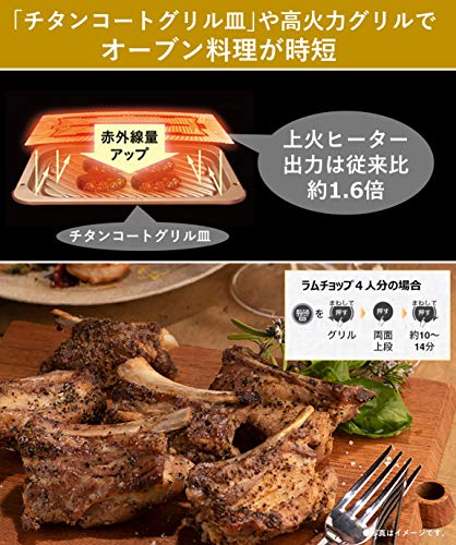 また新たに採用された「チタンコートグリル皿」と新・マイクロ波制御の搭載により熱のコントロールがよりきめ細かくなりました。さらに高反射による上火のアップと新・高温フェライトの搭載による下火のダブルアップにより、調理時間がより短縮されて、おいしく焼き上げてくれます。