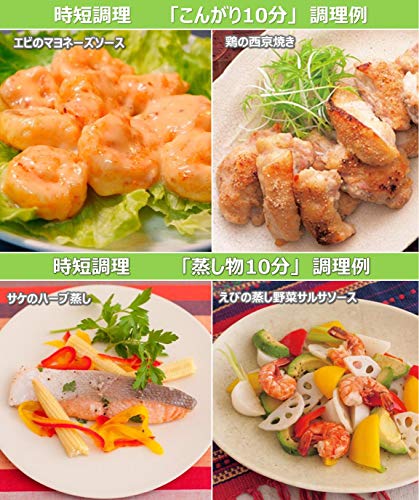 また厚切りの六枚切りトースト二枚を、約5分45秒で焼く「トースト」機能や短時間で調理ができる「スピードメニュー」機能も搭載されており、調理のメニューも豊富で充実しているのも魅力です。また油を使わずに「ノンフライ調理」ができるのでヘルシーな食生活にも最適です。