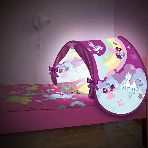 一人でベッドで眠るのが怖いというまだ幼いお子様も、ついついベッドに入りたくなるような、可愛いデザインを採用しています。またクリップで中に読書灯をつけられるので、眠るまでの時間を楽しく過ごすこともできます。