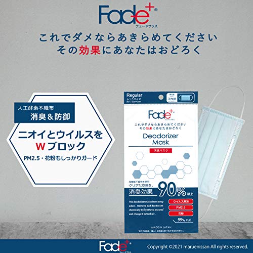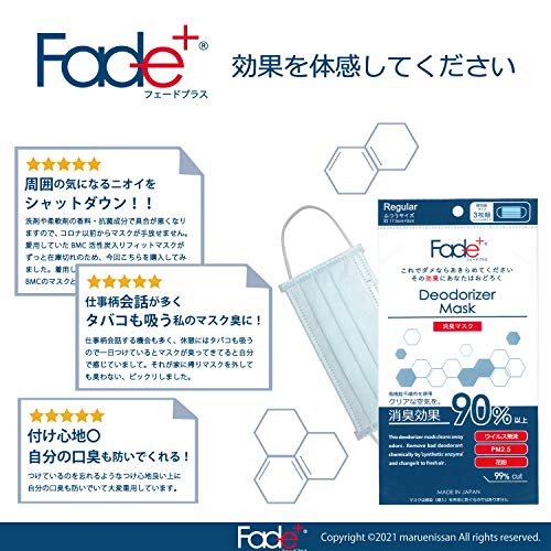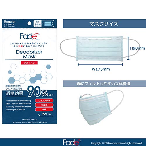 見た目は一般的な使い捨てのマスクなので消臭マスクだということは気づかれません。満員電車の中で他の人の匂いが気になる人、自分の口の匂いを他人に指摘されて嫌な気持ちになった人などにおすすめ。素材は一般的な不織布のマスクに銀イオンやセラミックスの消臭フィルターをサンドイッチしています。