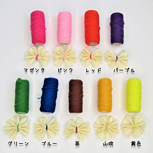 リボンを作るのに針と糸で縫っても良いのですが、この魔法の糸と呼ばれるものがあると巻きつけて指で切ることもできとても素早くリボンの下処理が完成します。