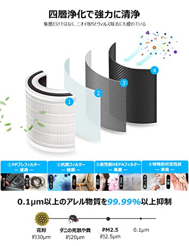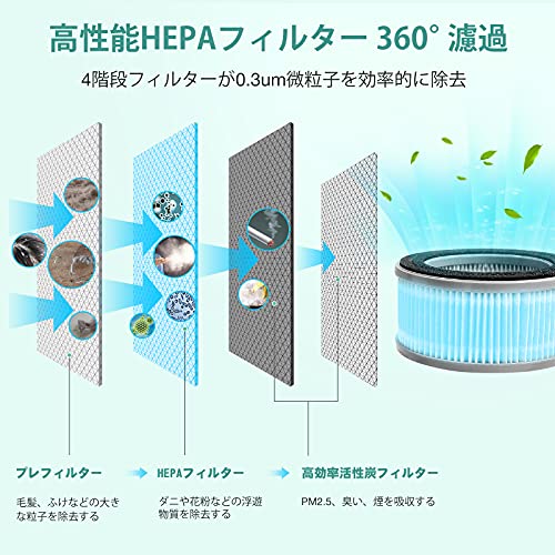 VAVSEA 空気清浄機 小型には、高性能のHEPAフィルターが搭載されています。4段階のフィルターを通すため、微粒子も効率的の除去。