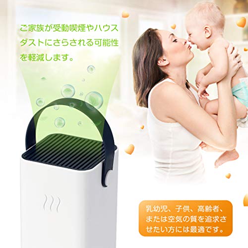 また、コンパクトな空気清浄機なのに広い面積での効果を期待できます。ホルムアルデヒドを除去し、マイナスイオンによって快適な空間を作り出すことが可能です。