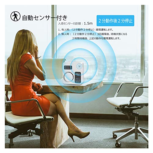 POLAMD 空気清浄機には、自動センサーが搭載されています。1.5mいないに人が近づくと、自動で起動。2分動作した後、2分停止します。
