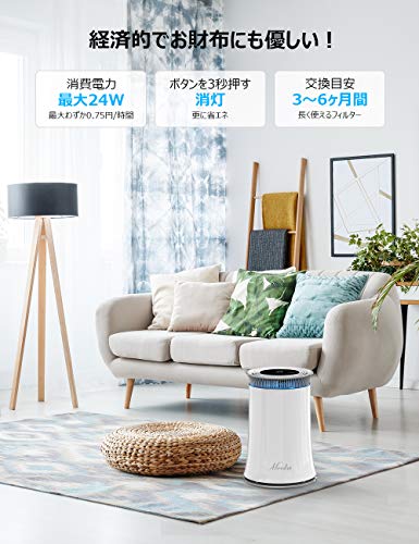 また、MOOKA 空気清浄機は7000円ほどで購入できます。フィルターは3~6ヵ月ほどで交換すれば、常に清潔な空気を保てるのでおすすめです。