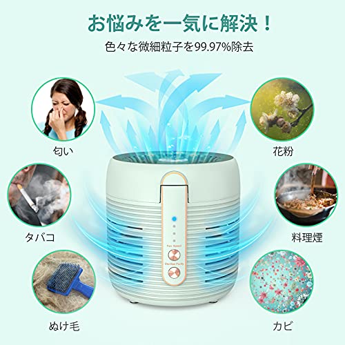 おしゃれな空気清浄機を探しているという人には、VAVSEA 空気清浄機 小型がおすすめ。アイスグリーンにゴールドがあしらわれたデザインで、どんな雰囲気のインテリアにも合います。