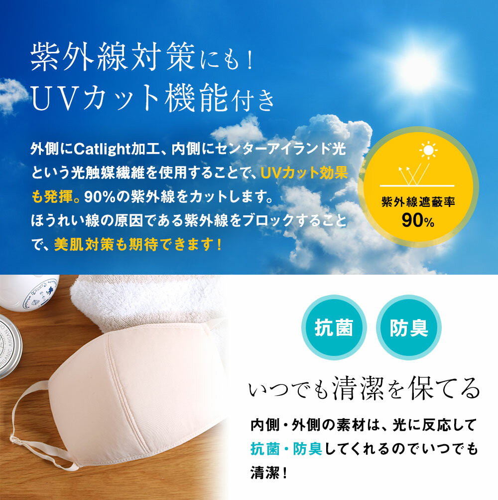 ツーヨン T-51には、UVカット効果が搭載されています。そのため、紫外線が気になる夏でも問題なく利用できるのがポイント。また、立体の形を採用しているので、メイクがマスクにつくのを防ぎます。