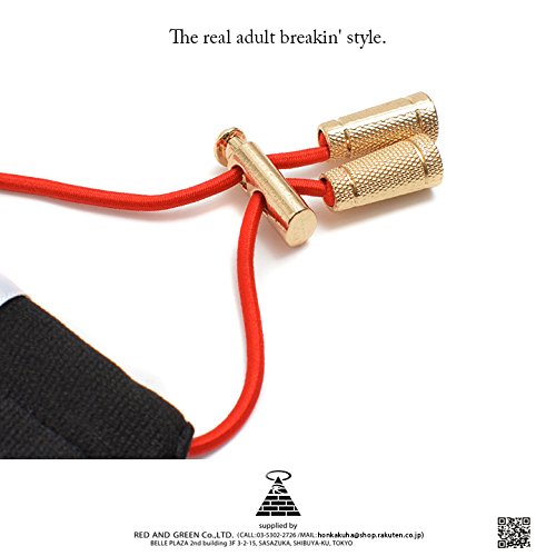 デザインの特徴は、何といっても赤い耳紐についているゴールドのアクセントで、紐止め部分と紐先に左右で合計6個のゴールドが、普通のマスクとは一線を画しており、全く違うファッションアイテムとなっています。
