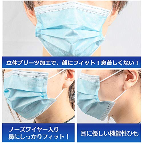 立体プリーツ加工によってぴったりと顔まわりにフィットさせて、身につけることができる使い捨てのおしゃれなマスクです。三層構造で、鼻にぴったりとフィットするノーズワイヤー入りなので、着用時にもずれにくいです。