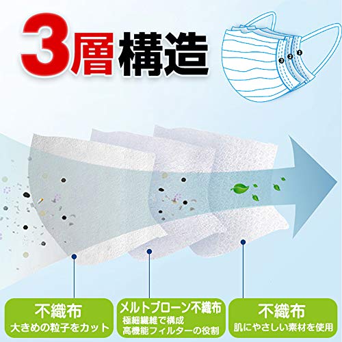 一層目に不織布フィルター、中間層に緻密な構造による穀物繊維のメルトブローンフィルター、3層目に不織布フィルターを採用している3層構造マスクです。