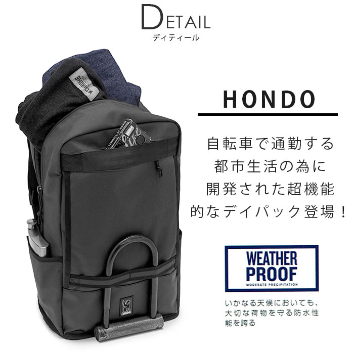 Chromeのホンドーは、重い荷物を背負いながら自転車通勤するメンズやレディースのために開発されたタフな作りのバックパックです。