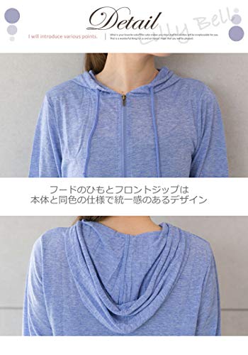汗をかきやすい夏場の外出シーンでも、爽やかに着ることができる吸汗速乾性に優れているドライ加工済み生地を採用しています。またUVカット機能も付いているので、着用してお出かけするだけで、肌をしっかりと日差しからガードする日焼け防止効果も得ることができるレディース用パーカーです。