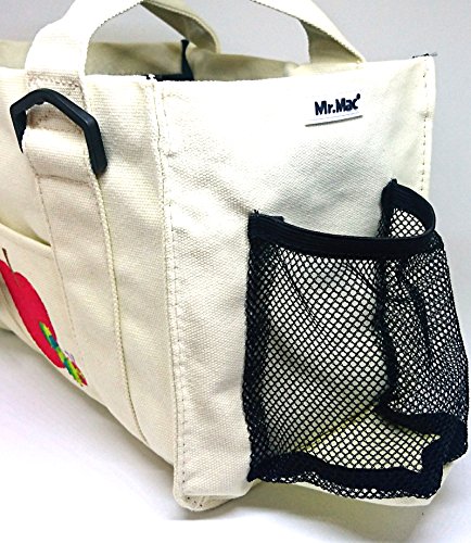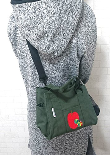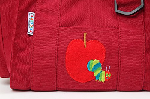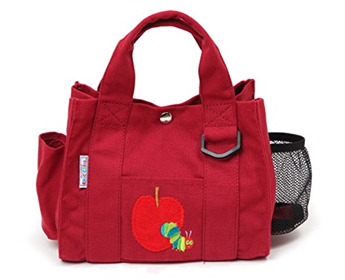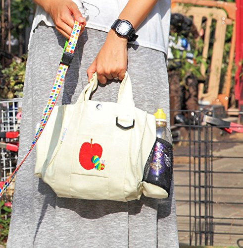 雨の日のレインカバーにはらぺこあおむしを選んだら、ママやパパのお散歩バッグもぜひはらぺこあおむしにそろえたいです。帆布の生地で作られたちょうどいいサイズのバッグの真ん中には、はらぺこあおむしがりんごを食べているあの刺繍がほどこされ、メッシュのボトルポケットがつき、肩にかけてショルダーにも早変わり。はらぺこあおむしファンならぜひ欲しい一品です。
