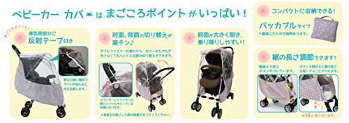 ベビー製品メーカーのアップリカのベビーカーに対応できる純正レインカバーです。天面の白い星の模様は、雨でぬれると色が変わるというしかけ付きのレインカバーなので、お出かけが楽しくなります。座面が高いベビーカーでもしっかりと防水できるに設計されているほか、レインカバー装着時でも子どもの乗せ降ろしができるように、正面の左右にファスナーがついているフロントオープンタイプ。環境ホルモン対応もしっかりしていて、赤ちゃんにやさしい素材を使っています。