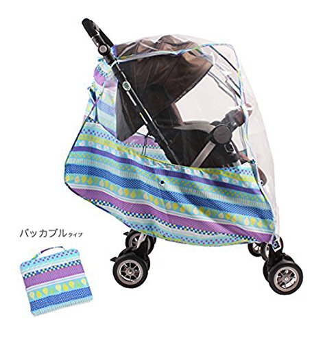 紫陽花を思わせるカラーリングがおしゃれなベビーカー用のレインカバーがこちらです。季節の色合いにマッチしているので、街中はもちろん、公園のお散歩にもすてきに映えます。さまざまなタイプのベビーカーに対応できるタイプで、コンパクトに収納するぱっかぶるタイプ。前面からサイドまで赤ちゃんの視界も広く、気持ちのいい散歩が楽しめそうです。