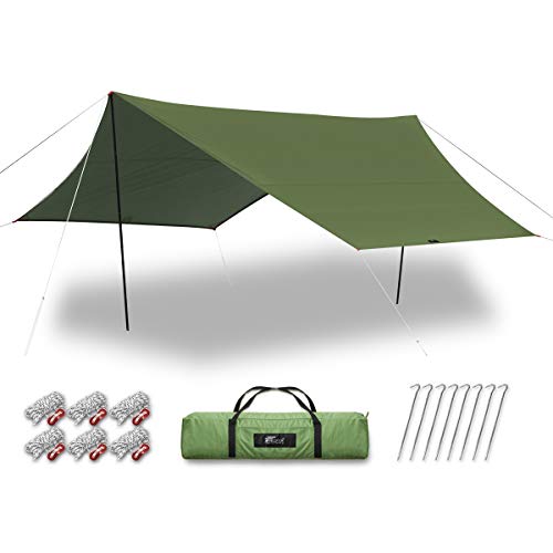 170cmのポールが標準装備されていて、広くくつろげる空間が作れます。PANDAVCテント同士をタープで連結することもできます。付属品が付いていて、設置も簡単にできるコスパのよいタープです。