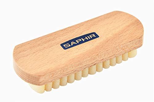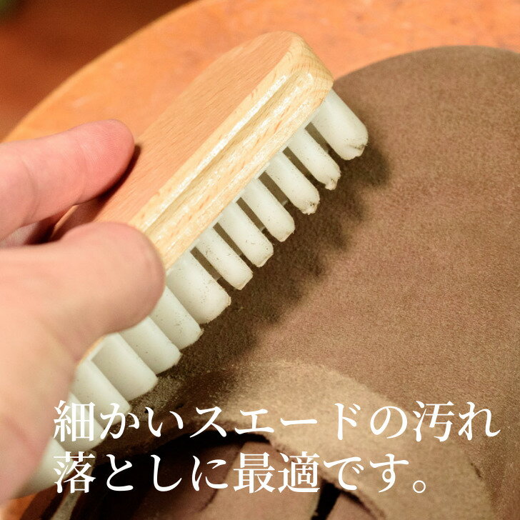 軽い汚れを払う時は、馬毛のブラシでも対応できますが、起毛の奥に入り込んだ汚れを落とすのには、専用のブラシが使いやすく、クリームを使うこともできないので、防水スプレーに栄養補給の成分が入ったものを使うと、楽にお手入れをすることができます。