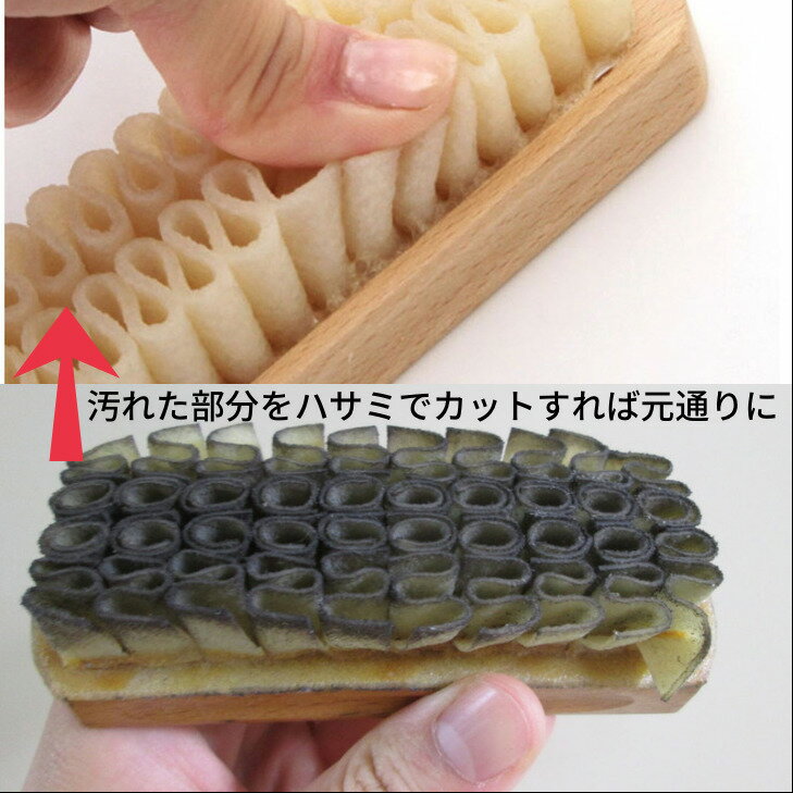 そんなスエードシューズ独特の汚れ方をお手入れするのが、クレープブラシとなっています。ゴムをクレープ上に重ねることで、スエードに付いた汚れをしっかりと絡めとり、毛を立たせることができます。