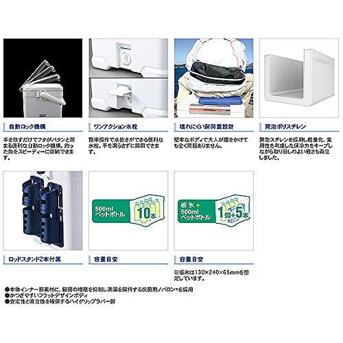 標準でロッドスタンドを装備している、シマノのクーラーボックスです。ライトというグレードの製品ですが、保冷力自体は先ほどご紹介した「ホリデー クール」よりも若干上。2タックルの持ち込み、ルアー交換が快適なロッドホルダーを標準で装備しています。ロッドスタンド自体はオプションとしてどのクーラーにも取り付けられるものですが、穴あけ作業が不安、改造後の仕上げが心配、という方にはコレがおすすめ。アジング、メバリング向けの120と、エギング向けの170がラインナップされています!