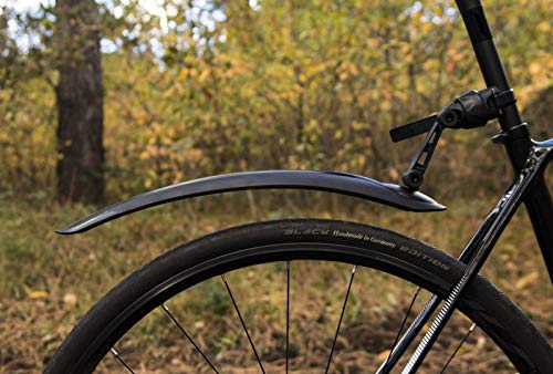 クロスバイクのリアタイヤ以外にもフロントタイヤからの泥はね対策も必須です。こちらの商品はフロントタイヤからの泥はねを防ぐ事ができる商品となっているので、上記で紹介したリア用の泥除け対策アイテムと同時に購入する事をおすすめします。